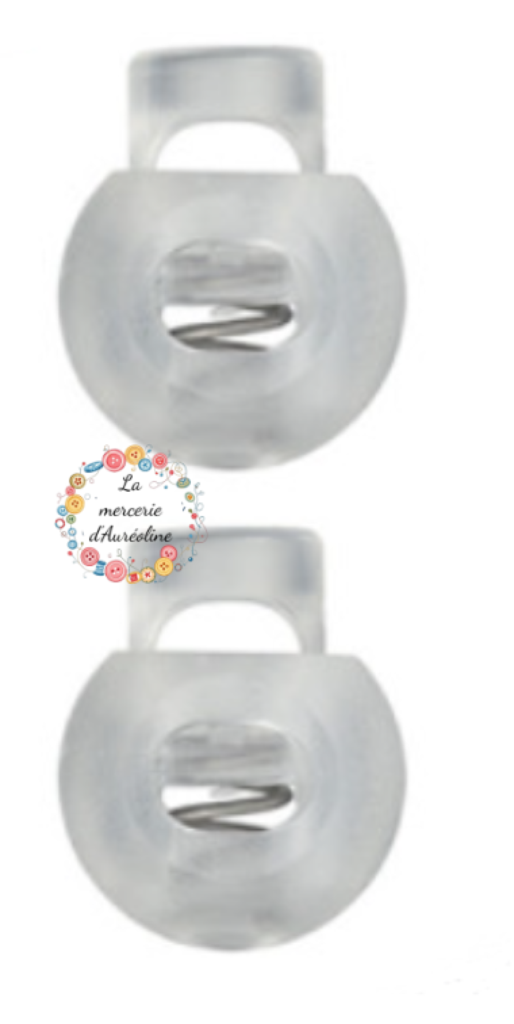 Bouchon de cordon de verrouillage en plastique transparent rond à 1 trou, il est muni d'un ressort pour bloquer le cordon d'un diamètre de 5mm maximum.