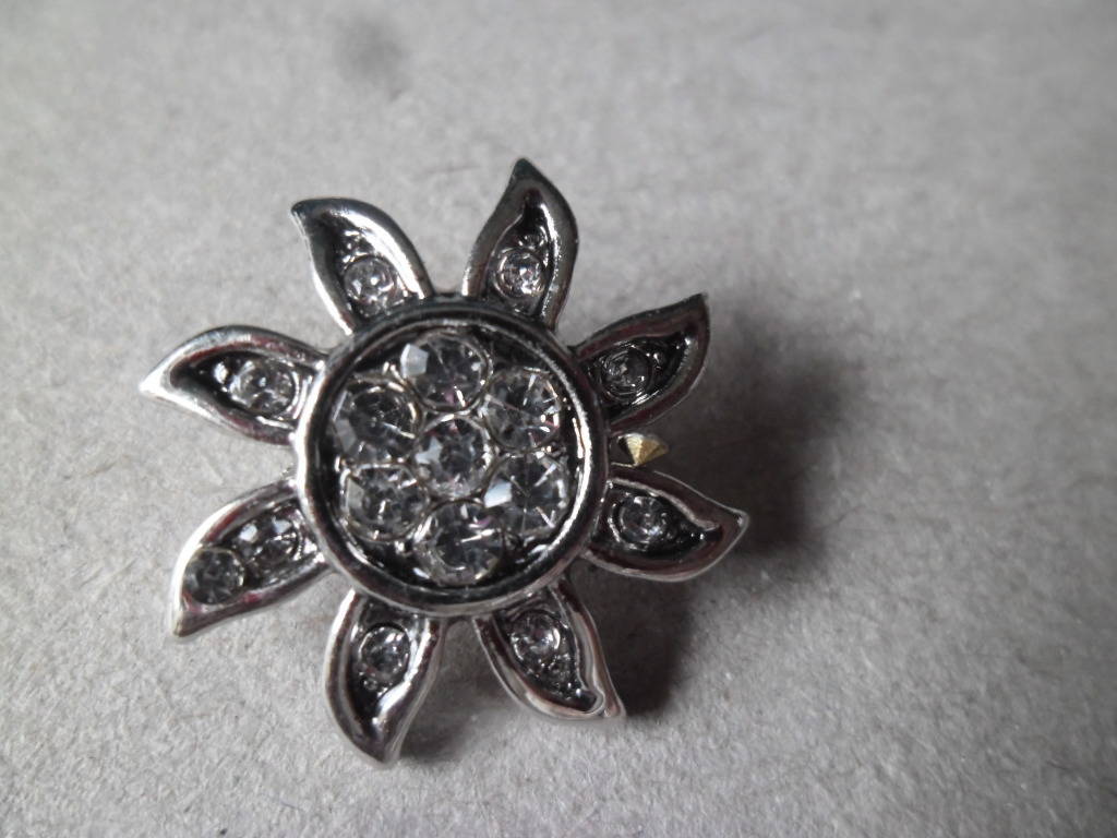 x 1 bouton pression(bijou)fleur soleil strass blanc
