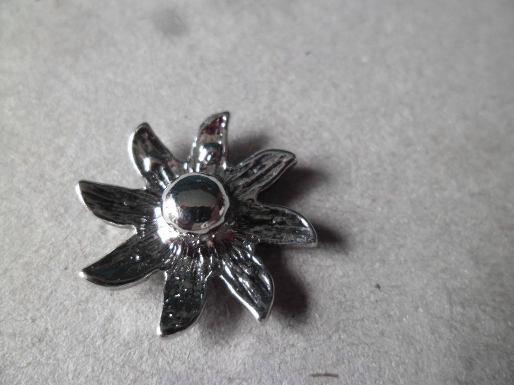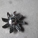 ce très beau bouton pression en forme de fleur soleil à strass couleur blanc au contour argenté.
