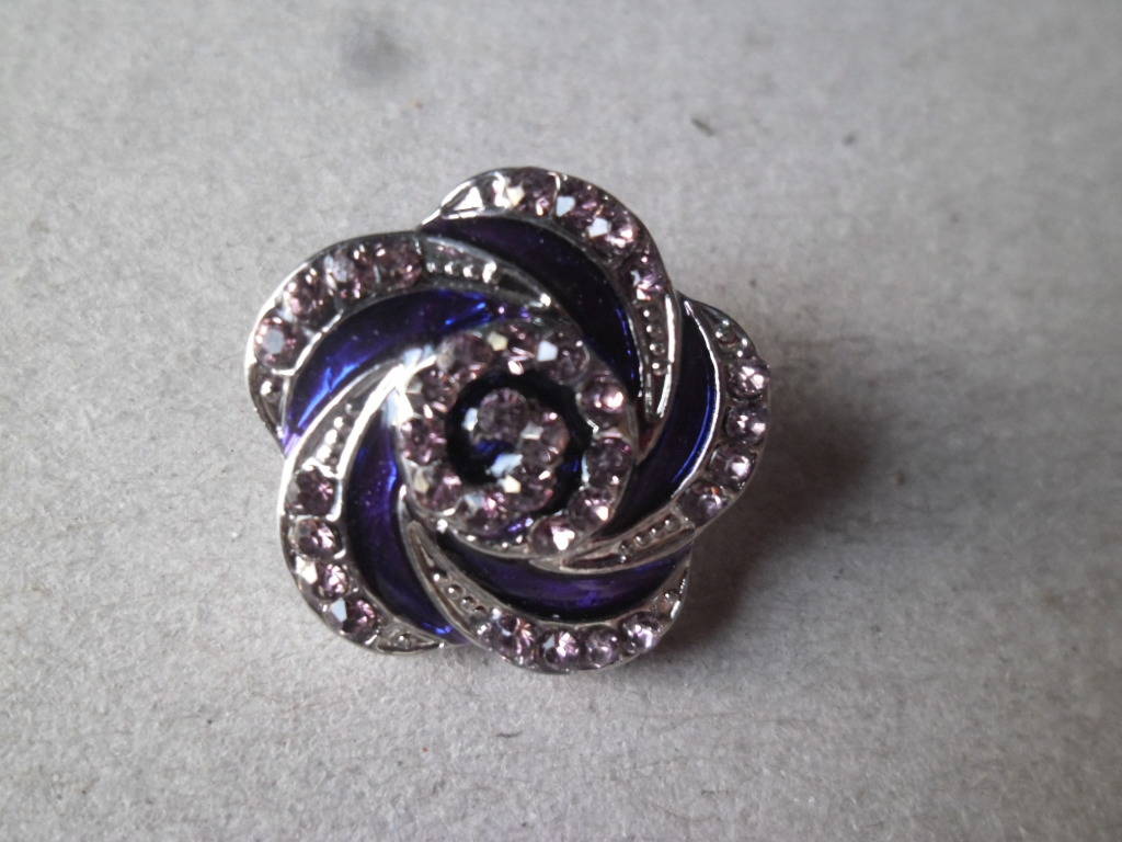 ce très beau bouton pression en forme de fleur rose à strass mauve/émail couleur violet argenté .