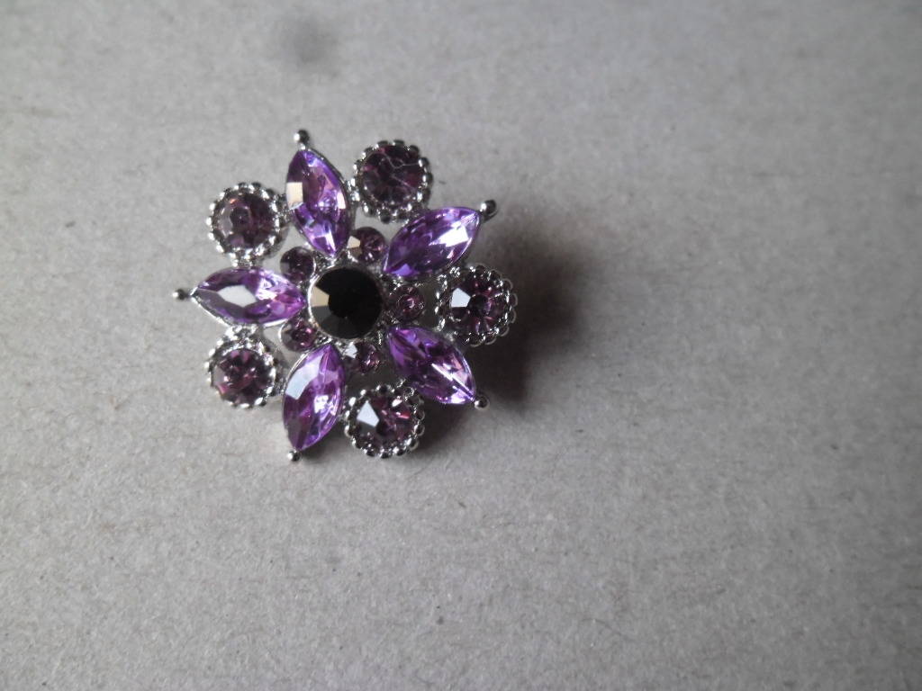 x 1 bouton pression forme fleur motif strass violet/mauve argenté