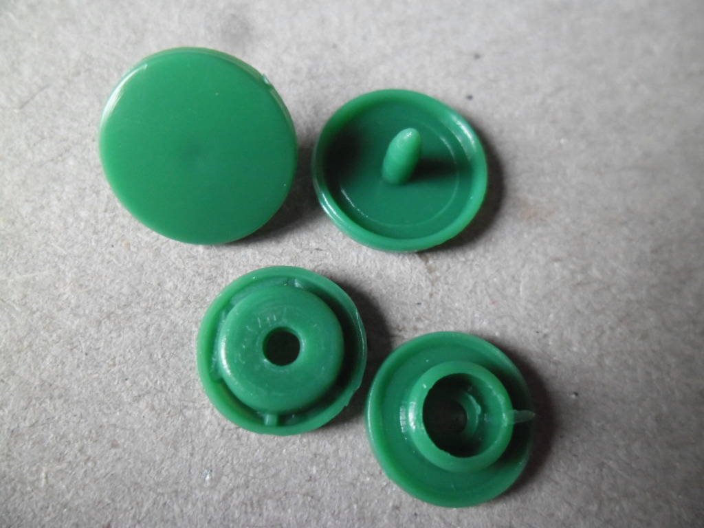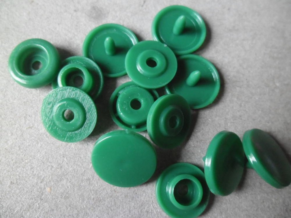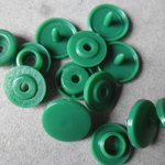 ce très beau lot de 10 boutons pression KAM T5 de couleur vert foncé en plastique de 12 mm de diamètre.