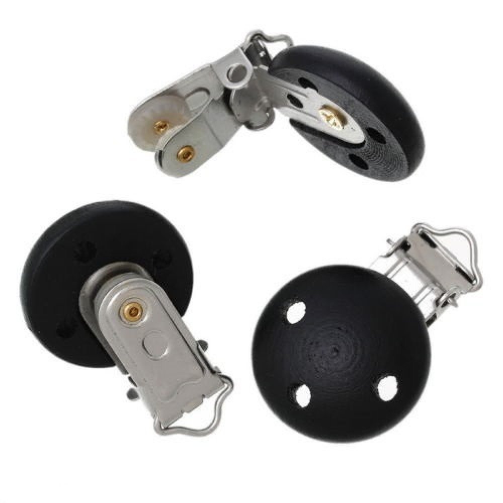 cette très belle pince bretelle en bois de couleur noir ou clips attache tétine,doudou en métal argenté.