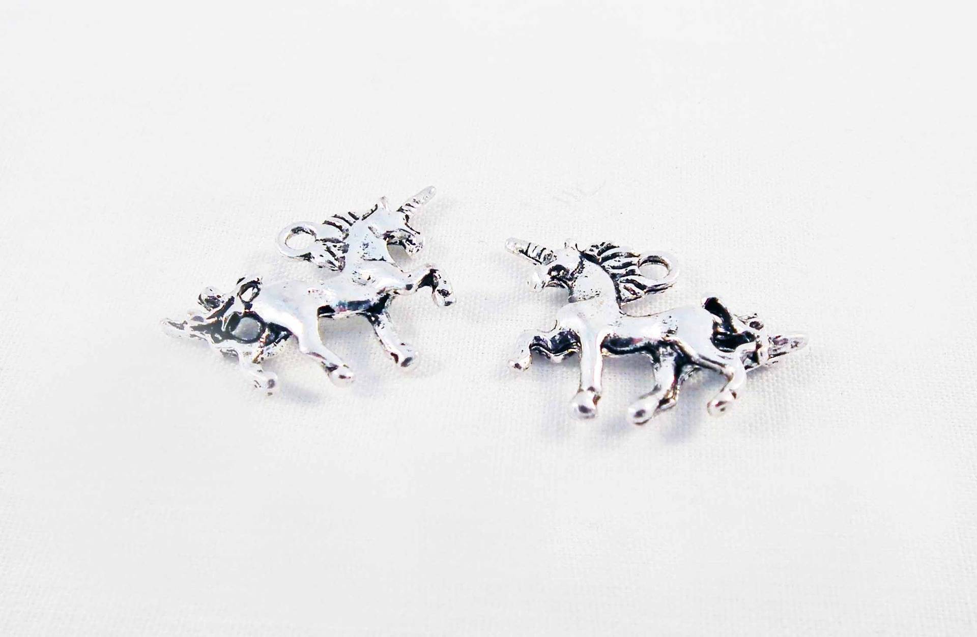 2 Breloques Pendentifs Licorne magique Cheval Argent Vieilli, 18mm X 18mm.