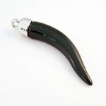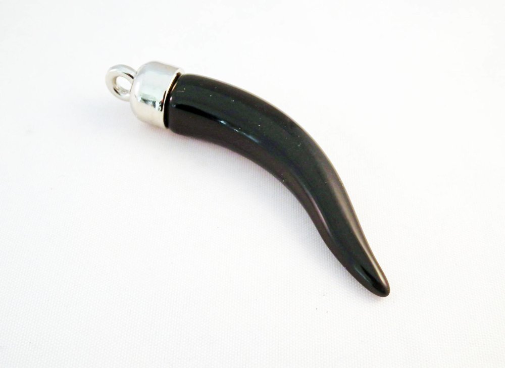Grande Breloque Pendentif Corne de Chance Noir avec Attache Bélière Argenté, 7cm X 1.2cm.