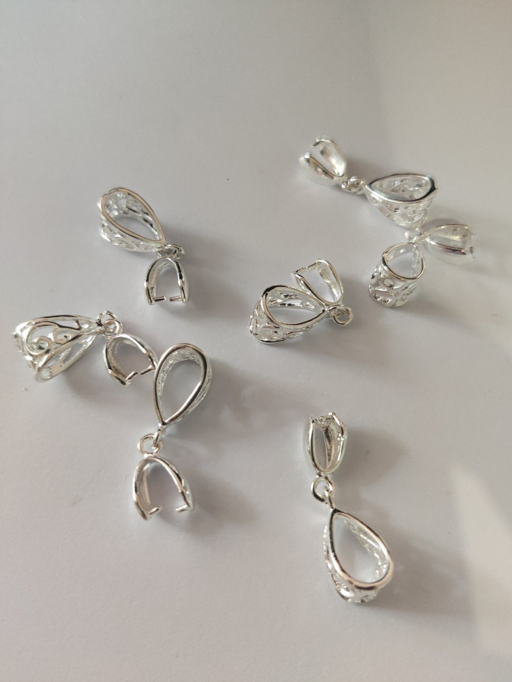Bélières de style pincement en laiton argent avec connecteurs de fleurs en filigrane