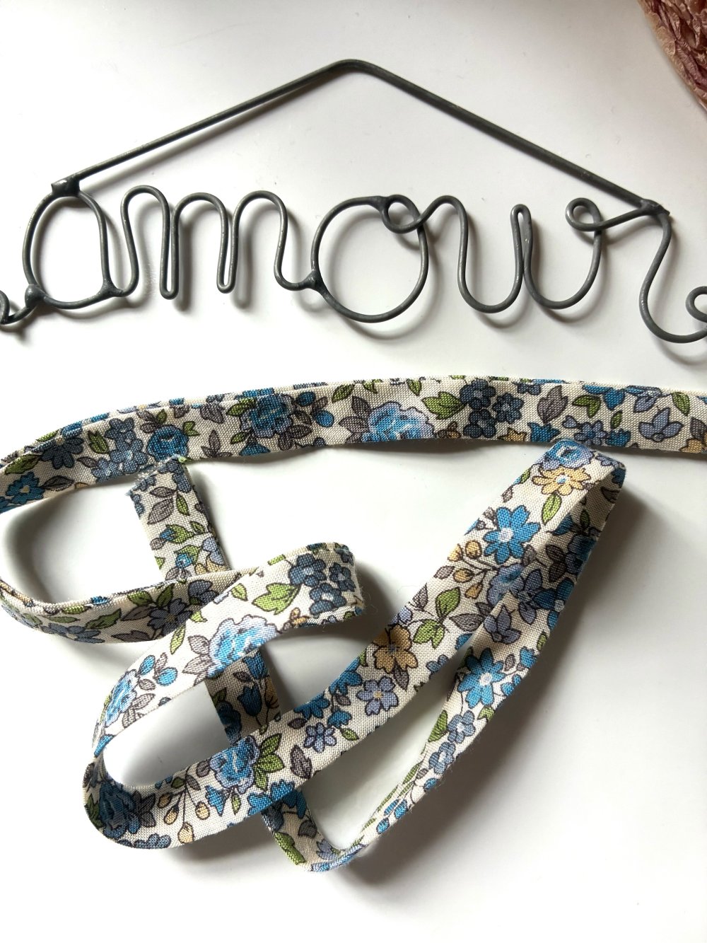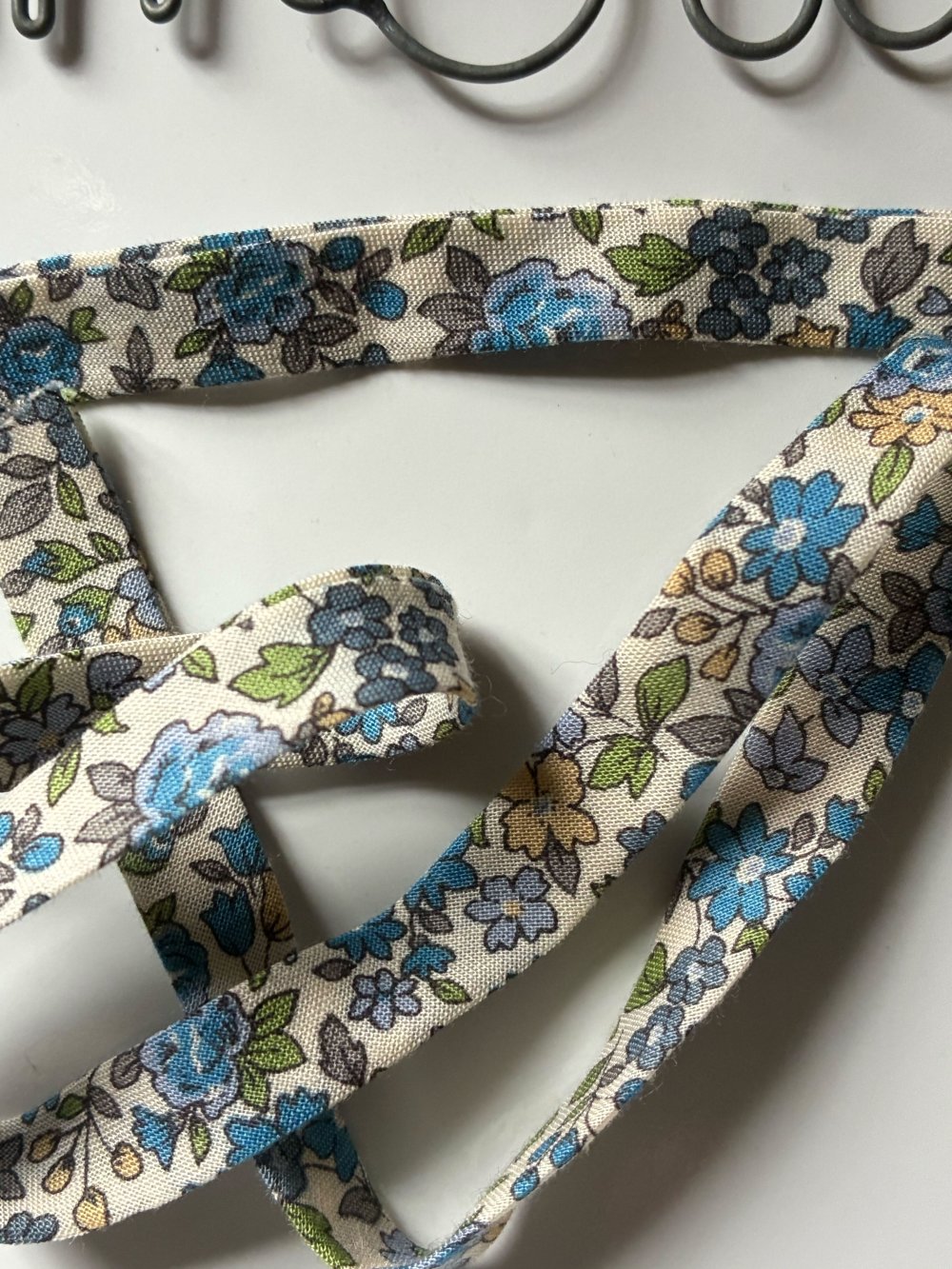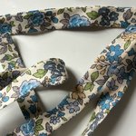 50cm de biais en liberty dans les tons de bleu et vert avec fleurs largeur 0,5cm.