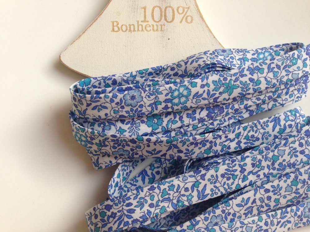 Biais liberty en 1 cm plié bleu et turquoise x50 cm