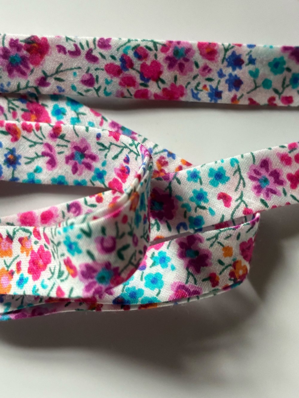 Biais liberty Phoebe fuchsia en 1 cm plié
