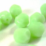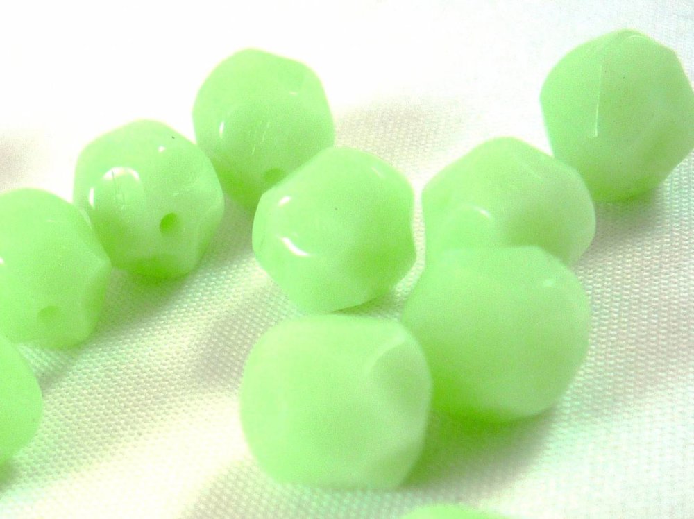 Dix perles en verre à facettes, vert menthe, diamètre 8mm, passage du fil 0,8mm.