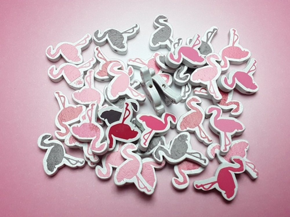 Lot de 5 perles flamant 30x19x4.5mm mixte bois