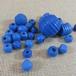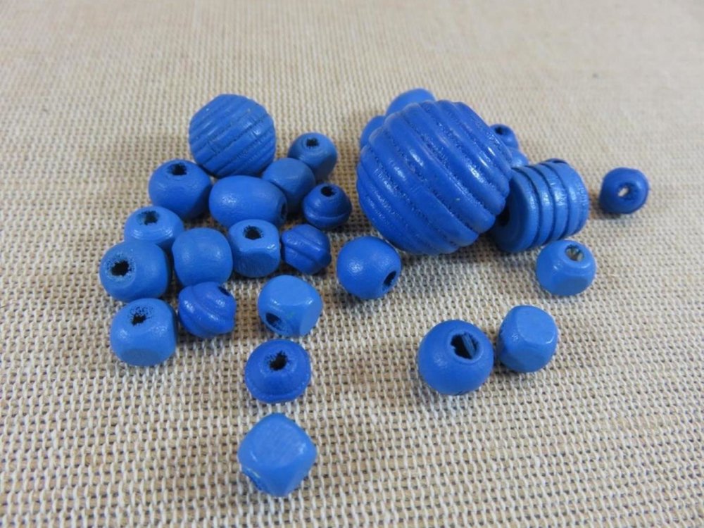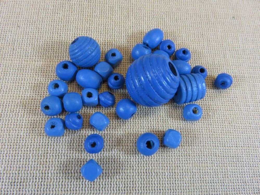 Lot de 30 perles en bois bleu diverses forme pour création bijoux DIY