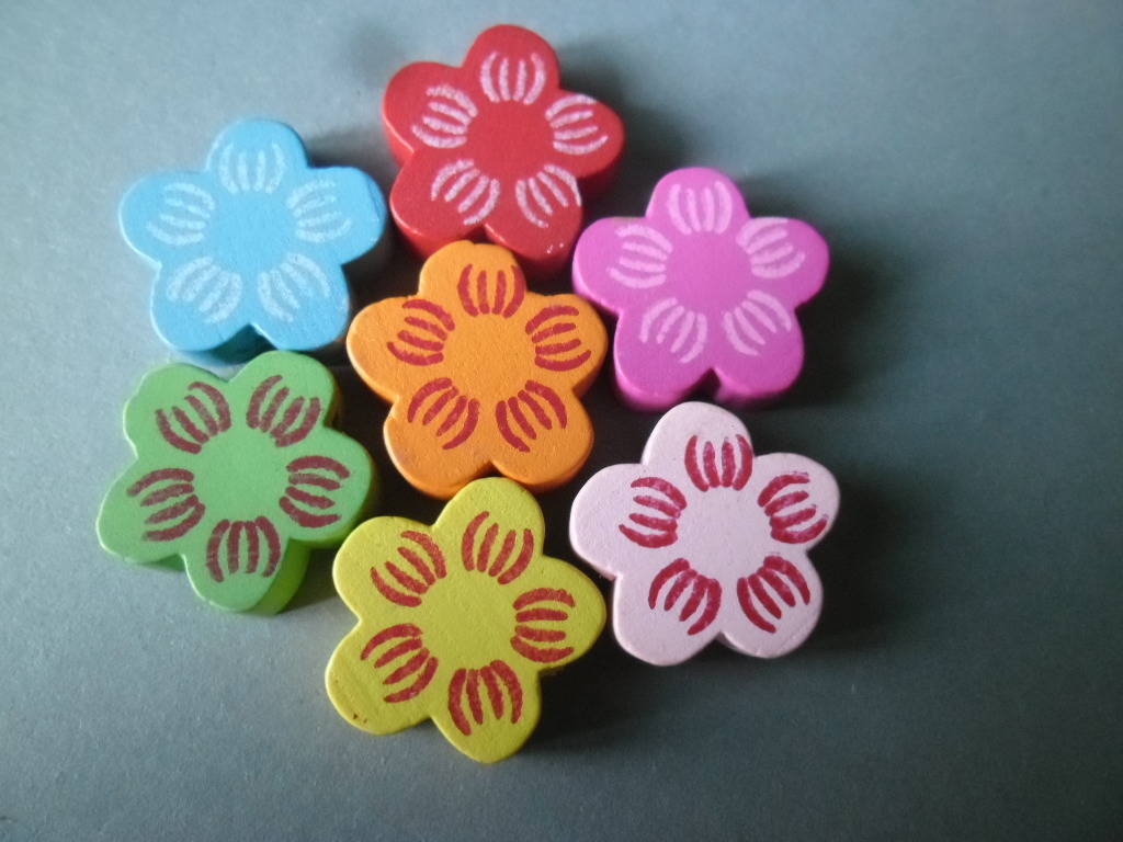 x 1 GROS lot 50 mixte perles bois forme fleur multicolore