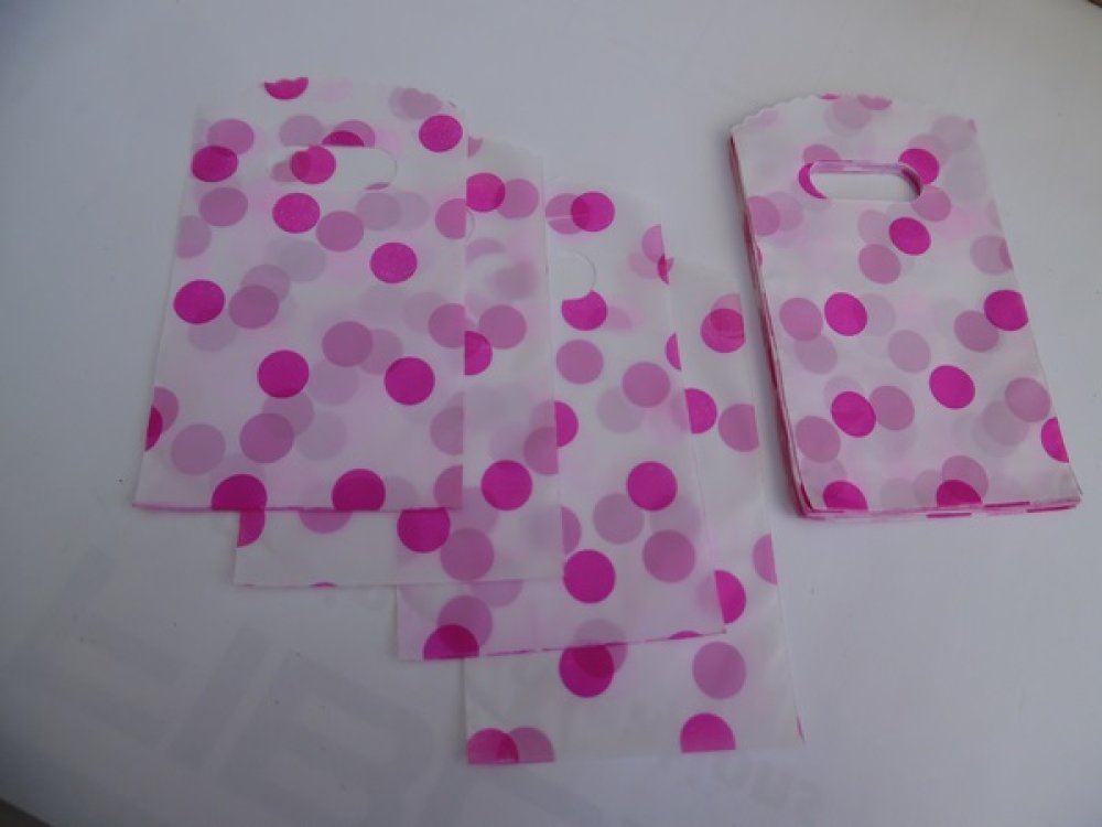 Lot de 10 Pochettes Souple et Fine à Pois Fuchsia Rose en Plastique souple 15x9cm