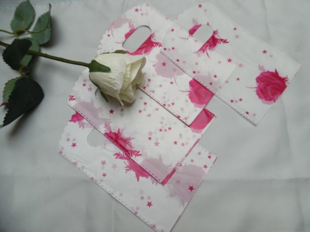 Lot de 10 Pochettes Souple Fine à Fleur Rose Blanc Rose en Plastique Souple 15x9cm Rebord Ondulé