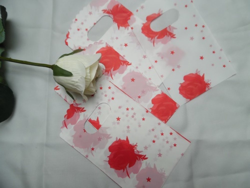Lot de 10 Pochettes Souple Fine à Fleur Rose Blanc Rouge en Plastique Souple 15x9cm Rebord Ondulé
