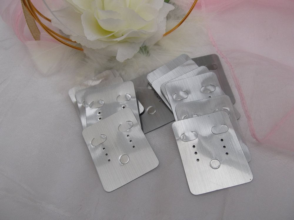Lot de 15 supports plastique boucle d'oreille 4.8x3.8cm gris argenté