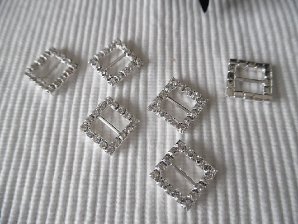 1 Boucle de ceinture passant carré métal et strass de verre de 13x13mm argenté