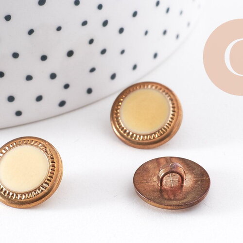 Bouton ancien rond or et émail écru strié 13mm, fourniture de mercerie vintage, x1 (G10152)