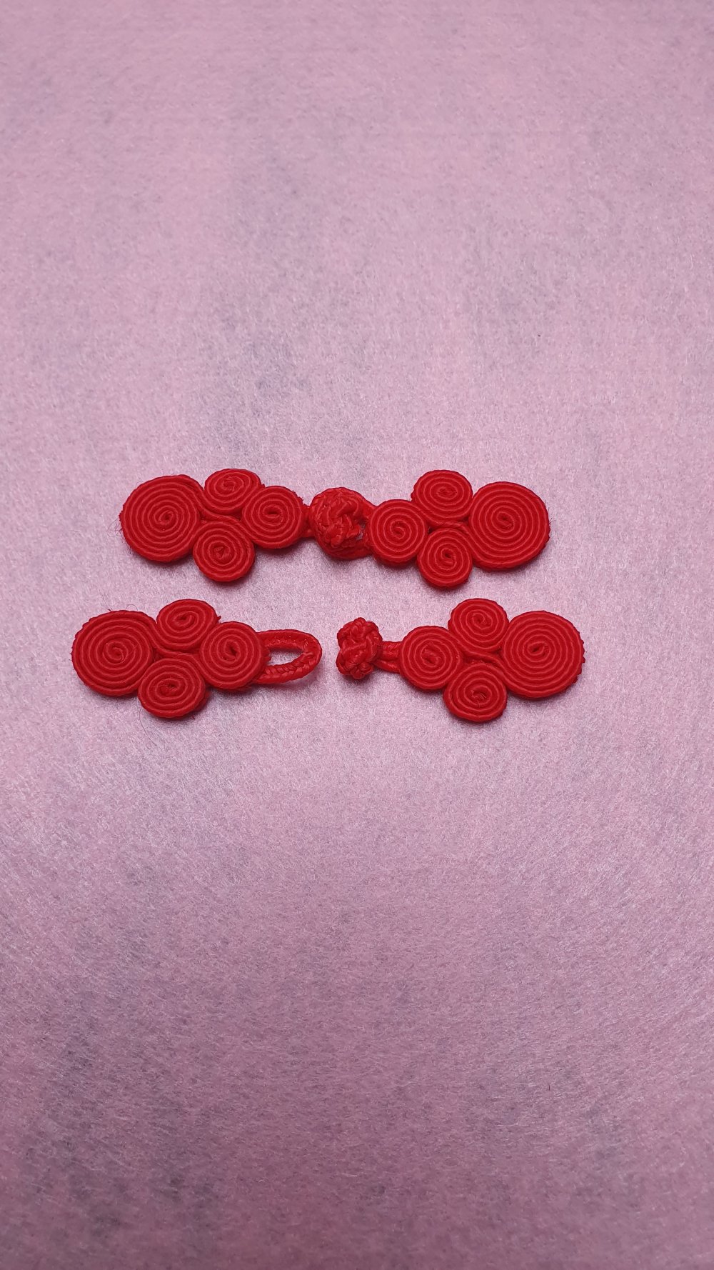 1 bouton brandebourg rouge noeud grenouille chinois passementerie