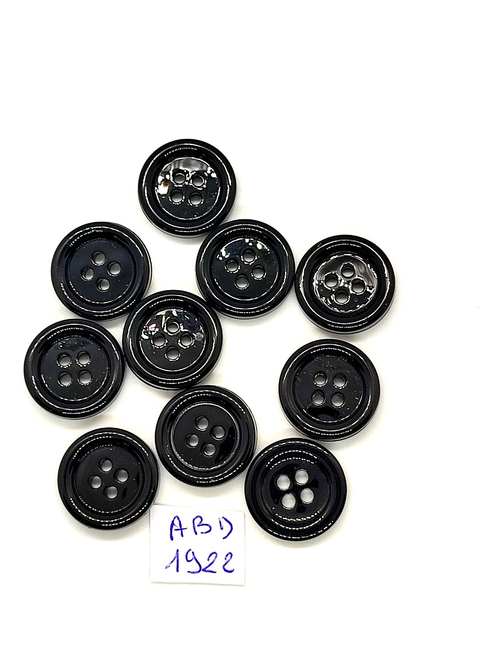 10 Boutons en résine noir - 18mm - ABD1922