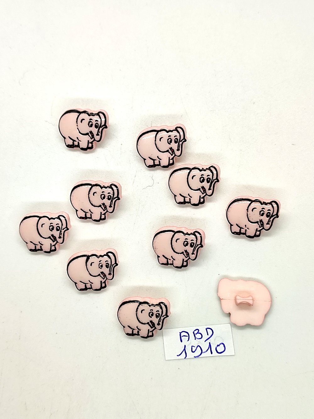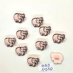 10 boutons fantaisie en résine rose et noir (éléphant) - 14x16mm - ABD1910
