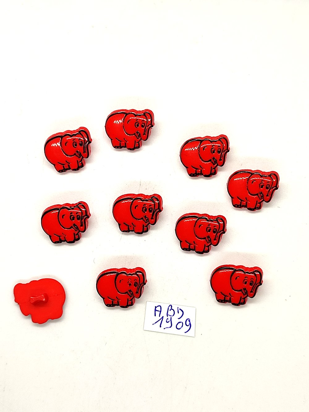 10 boutons fantaisie en résine rouge et noir (éléphant) - 14x16mm - ABD1909