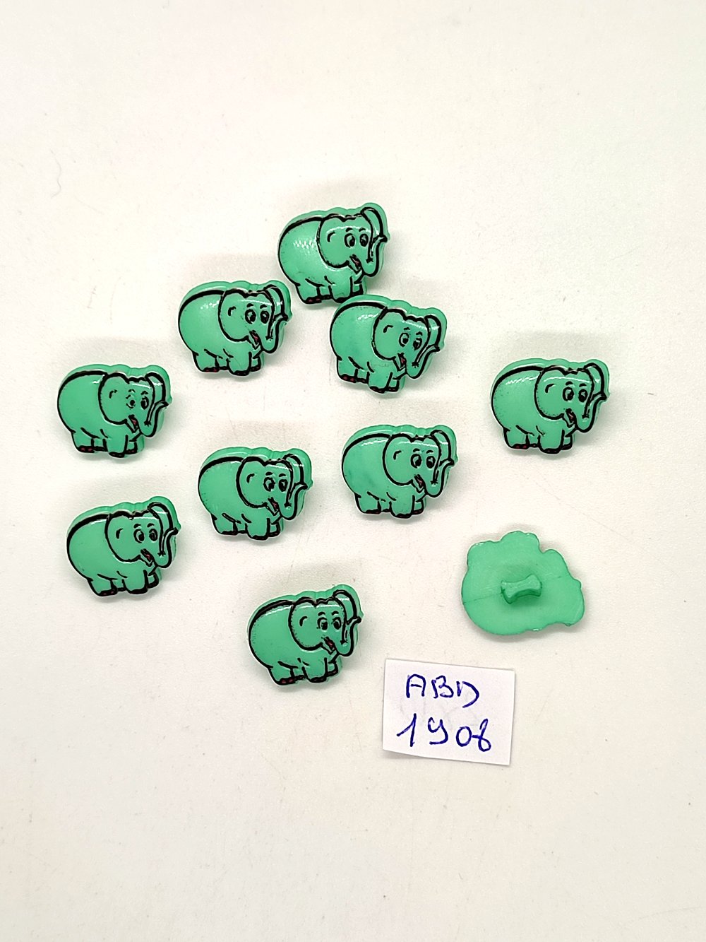 10 boutons fantaisie en résine vert et noir (éléphant) - 14x16mm - ABD1908