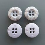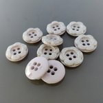 Lot de 10 boutons en plastique de coloris mauve très pâle.