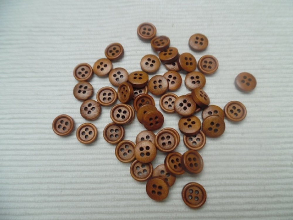 Lot de 10 boutons rond unis 12x3.5mm bois marron