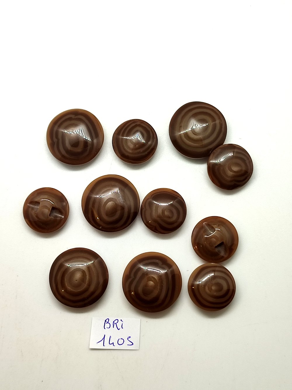 11 Boutons en résine marron - 22mm et 18mm - BRI1405