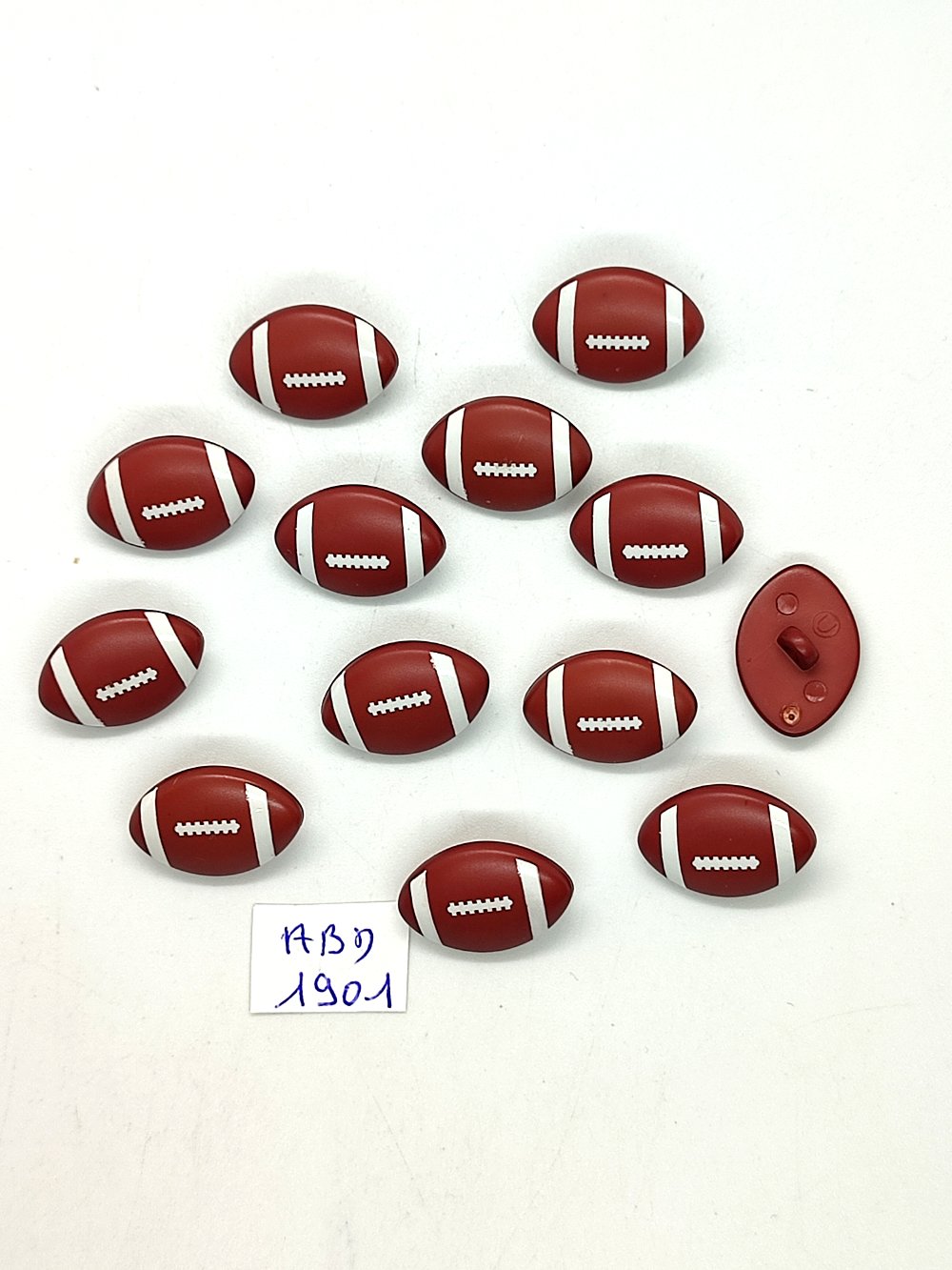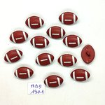 13 Boutons fantaisie en résine - ballon de rugby marron et blanc - 14x20mm - ABD1901
