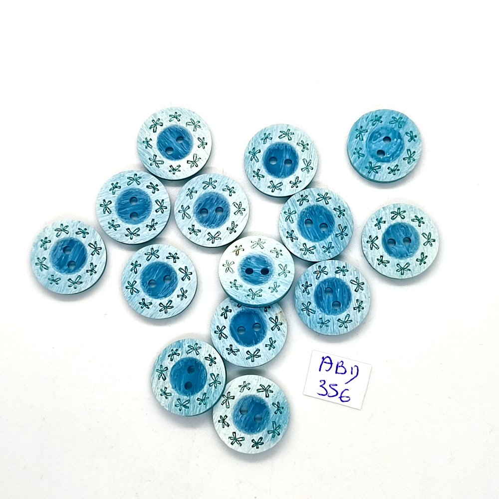 14 Boutons en résine bleu - 18mm - ABD356
