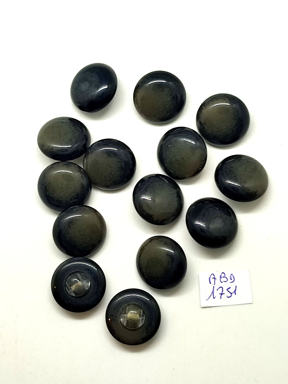 14 Boutons en résine gris foncé - 17mm - ABD1751