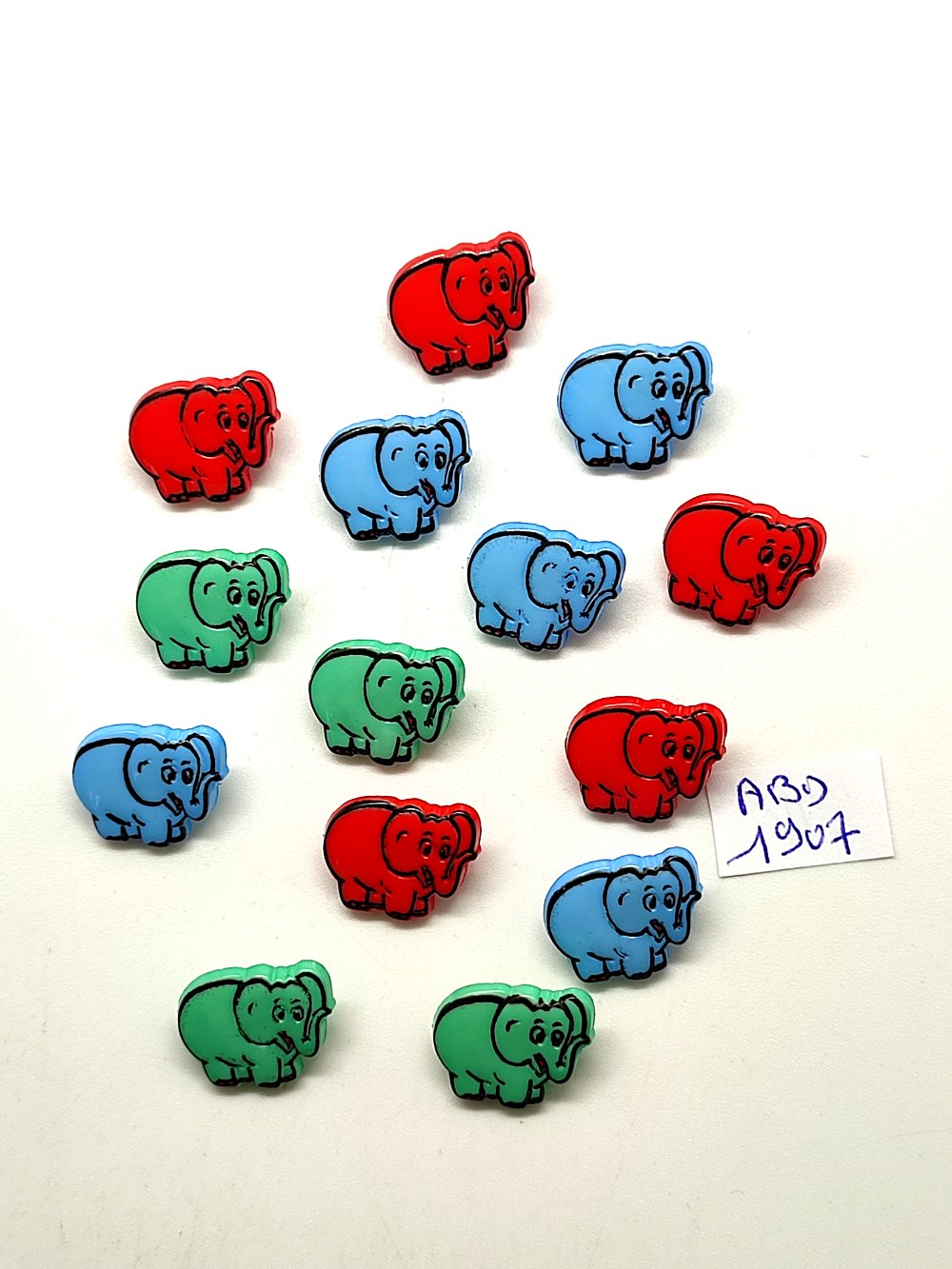 14 boutons fantaisie en résine multicolore et noir (éléphant) - 14x16mm - ABD1907