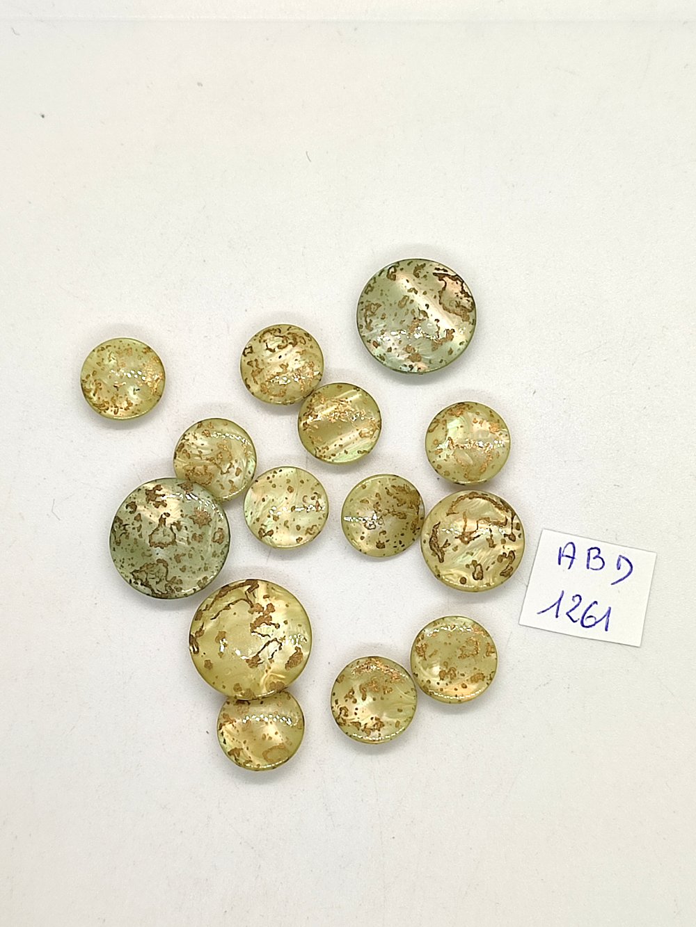 14 Boutons résine vert moucheté - 18mm - 15mm et 13mm - ABD1261