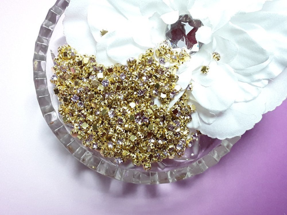 Lot de 15 boutons strass 4x4mm blanc diamond doré verre à facette à coudre. Plusieurs couleurs dans la boutique