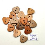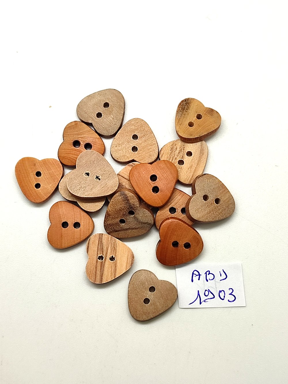 17 Boutons en bois marron - un coeur - 15mm - ABD1903