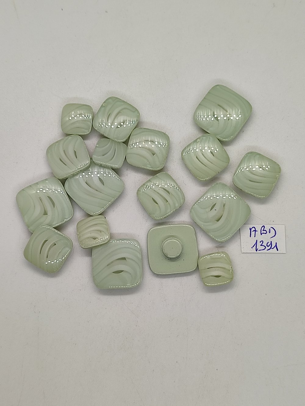 17 Boutons résine vert clair - 18x18mm - 15x15mm et 12x12mm - ABD1391