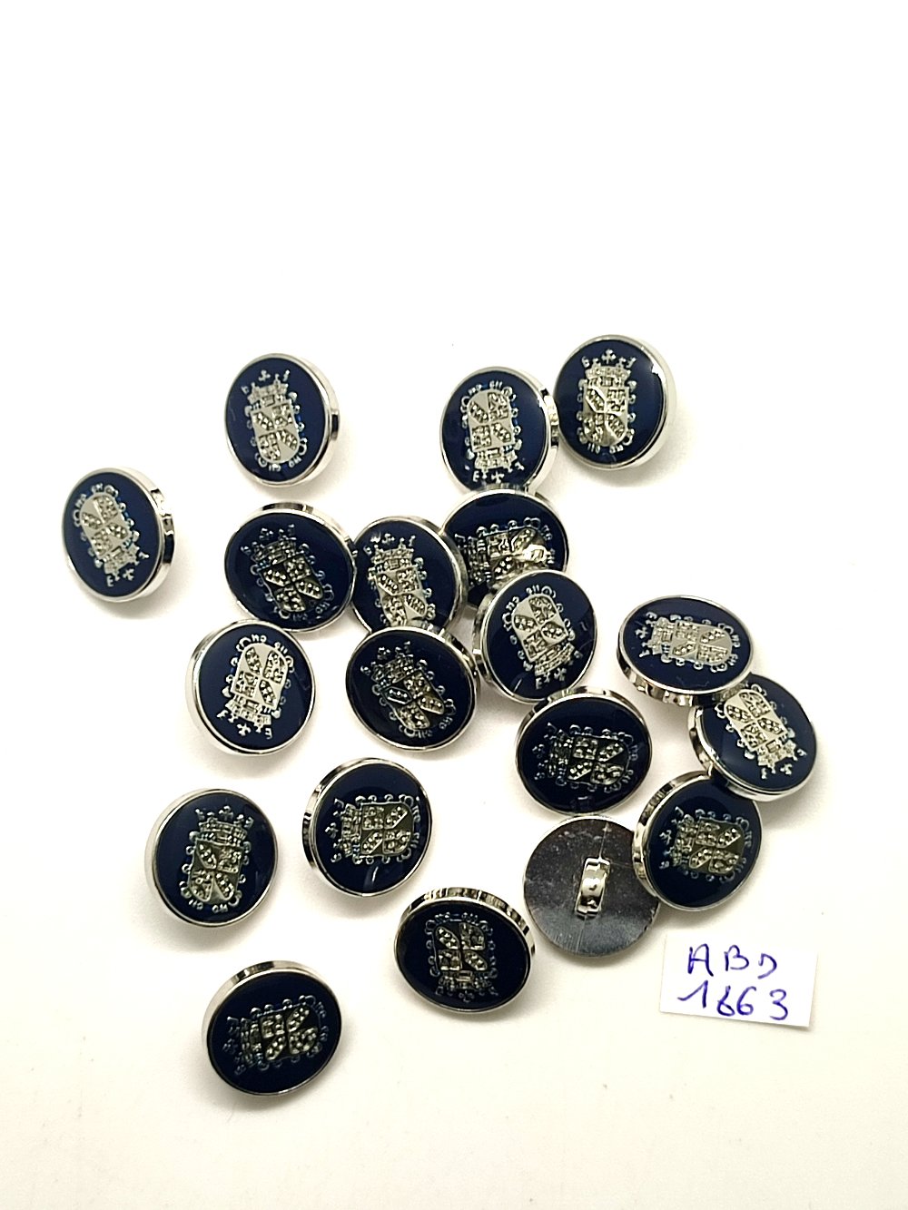 19 Boutons en résine argenté et noir - 15mm -20BD1863