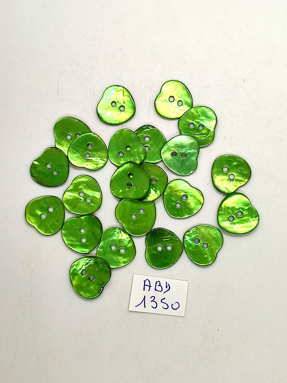 22 Boutons nacre vert - cour - 14mm - ABD1350