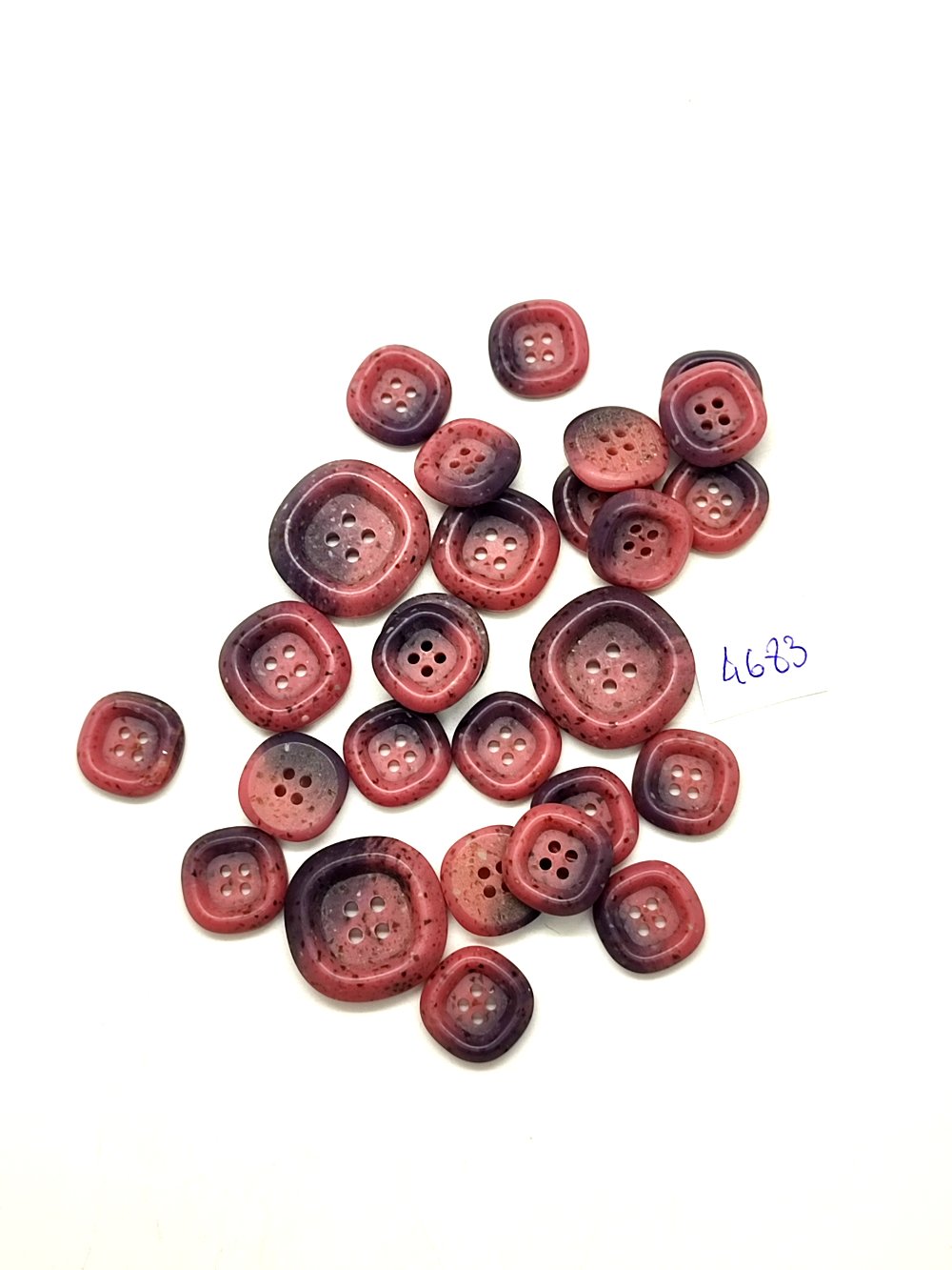 27 boutons en résine vieux rose / marron - 21x21mm - 17x17mm et 14x14mm - TR4683