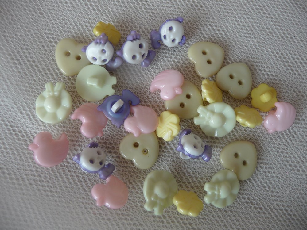 Des petits boutons adorables pour vêtements d'enfants ou pour finaliser vos créations textiles, customisation, scrap, home-déco, tous loisirs créatifs ...