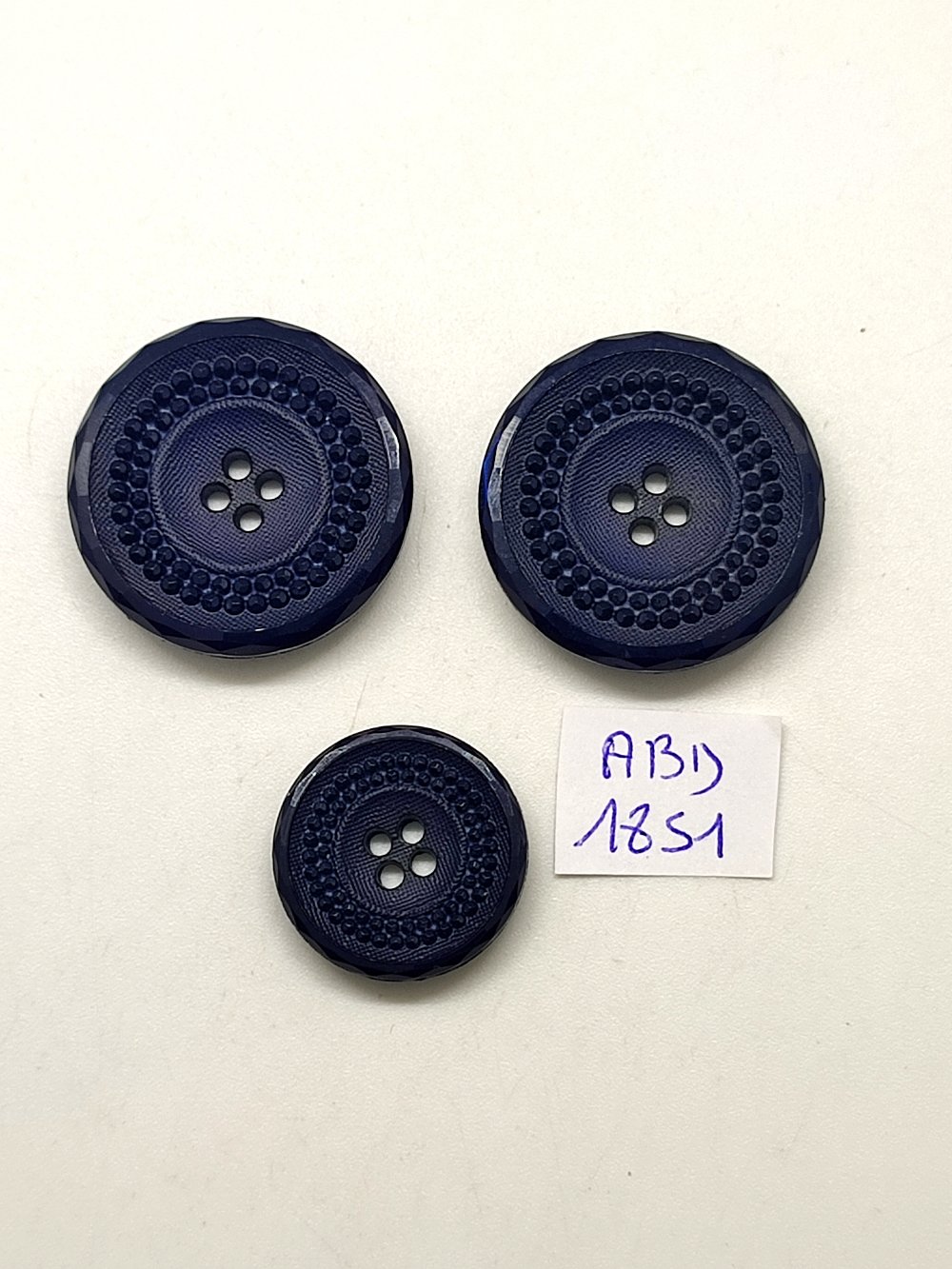 3 Boutons en résine bleu foncé - 28mm et 20mm - ABD1851