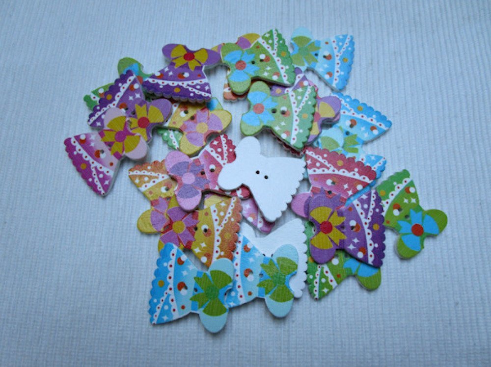 ARTICLE: Lot de 5 Boutons Mixtes "Robes Fillette" en Bois de 3.1x3.1cm à 2 Trous