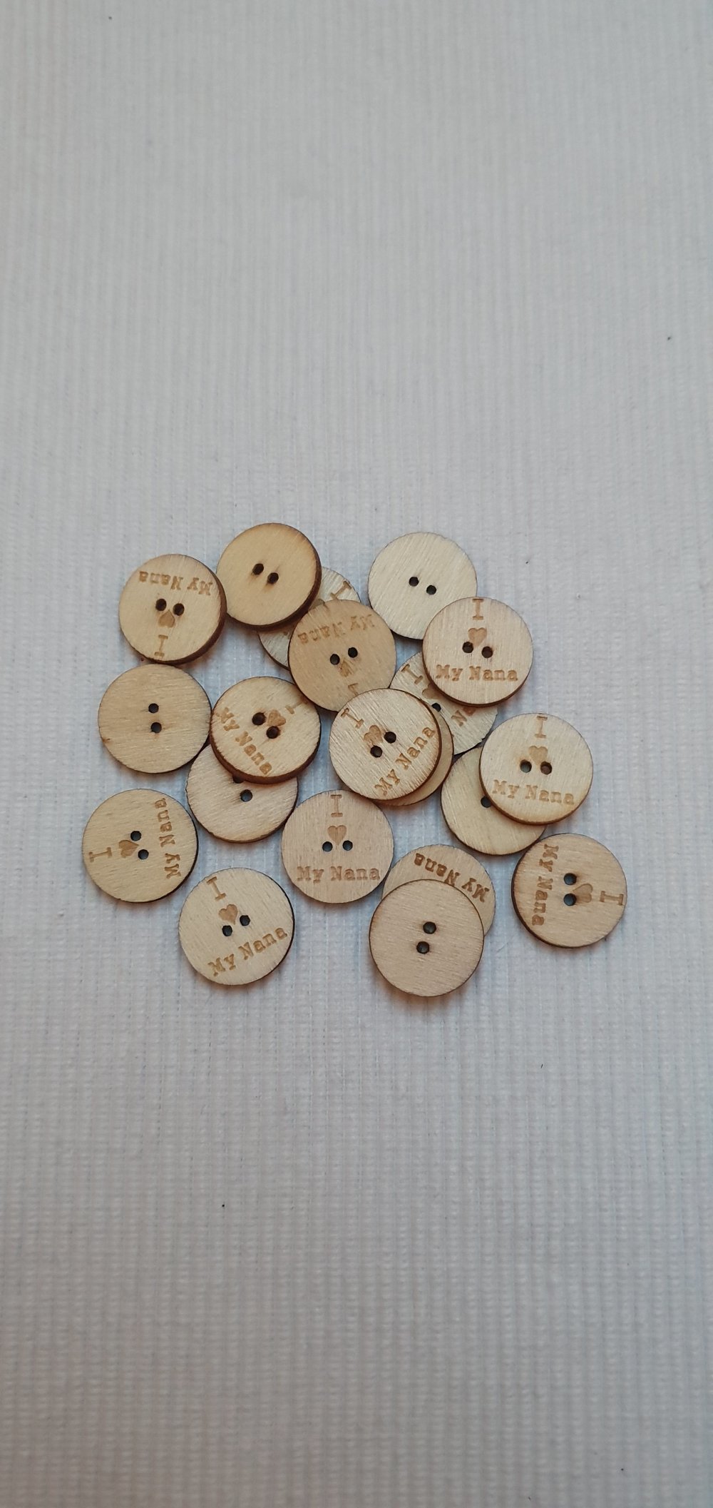 5 Boutons bois naturel gravé "I love my nana" 19.8mm.