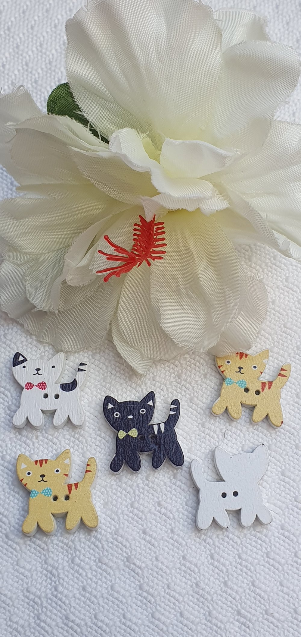 Lot de 5 Boutons chat 24x24x4.5mm mixte bois à 2 Trous