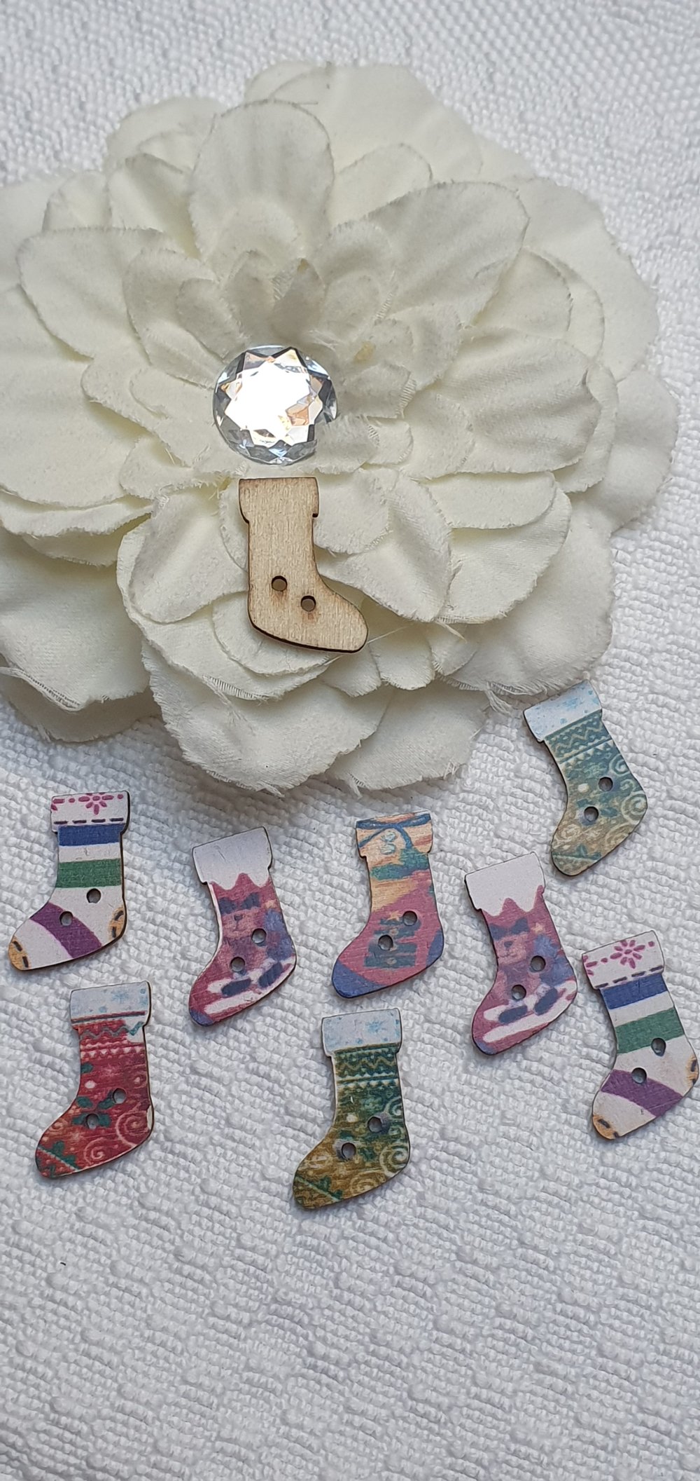 Lot de 5 Boutons chaussette de noël 24x16X2mm bois brulé multicolore
