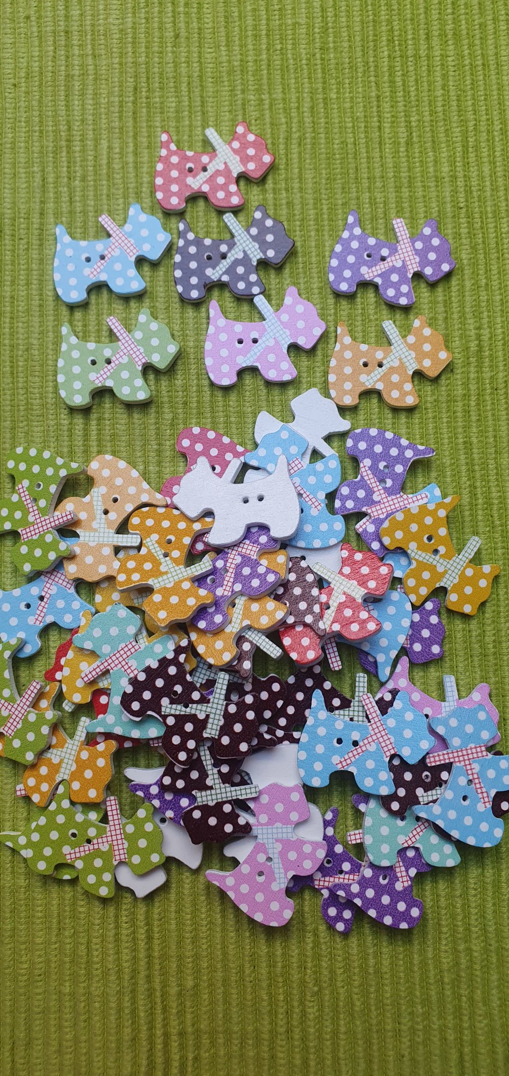 Lot de 5 boutons chien bleu turquoise à pois blanc 27.7x21x2.4mm bois à 2 trous