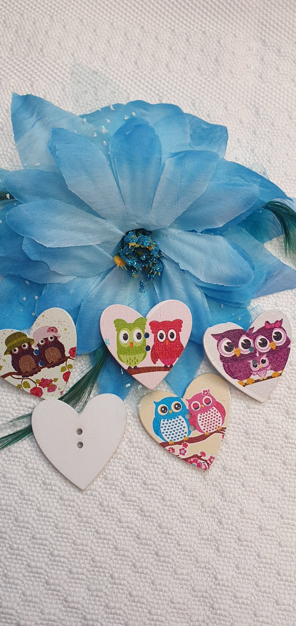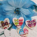 Lot de 5 Boutons coeur hibou chouette 34x34x3mm mixte bois